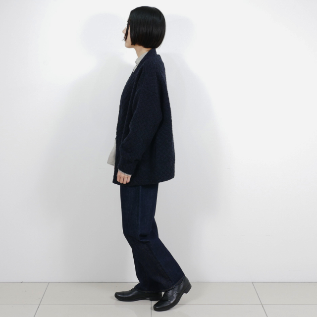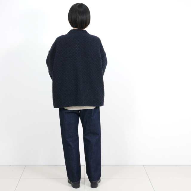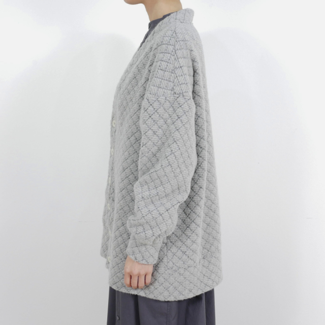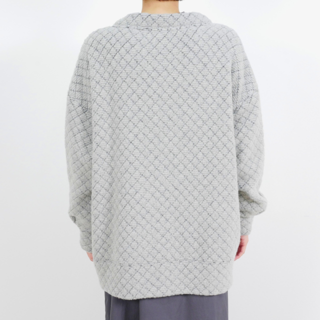ポップコーンニットのような立体感とキルティング柄が作り出す表情が特徴のスライバーニットを使用。