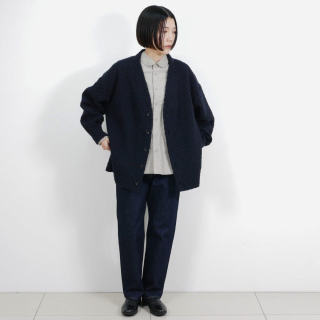 オーバーサイズで着丈が長めのVネックカーディガンです。