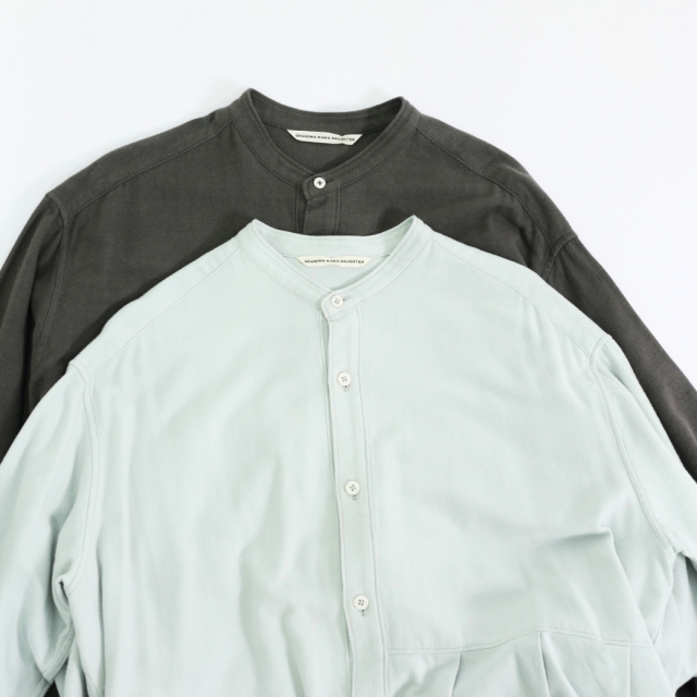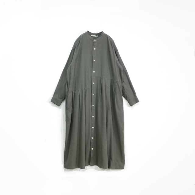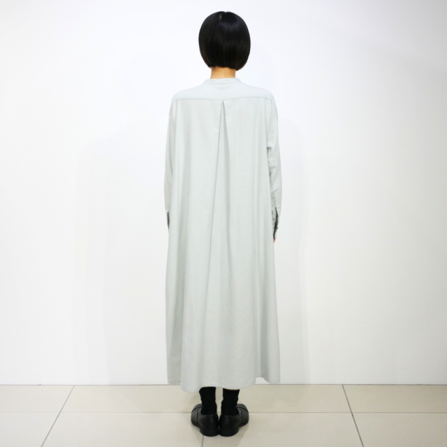 程よい落ち感と独特なヌメリ感、ソフトタッチが特徴のコットンキュプラのフランネル素材を使用しています。 後ろはシンプルなセンタータックでややAラインのシルエットになっています。 キュプラ混による適度なツヤ感がカジュアル過ぎず着て頂けます。