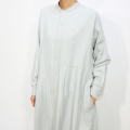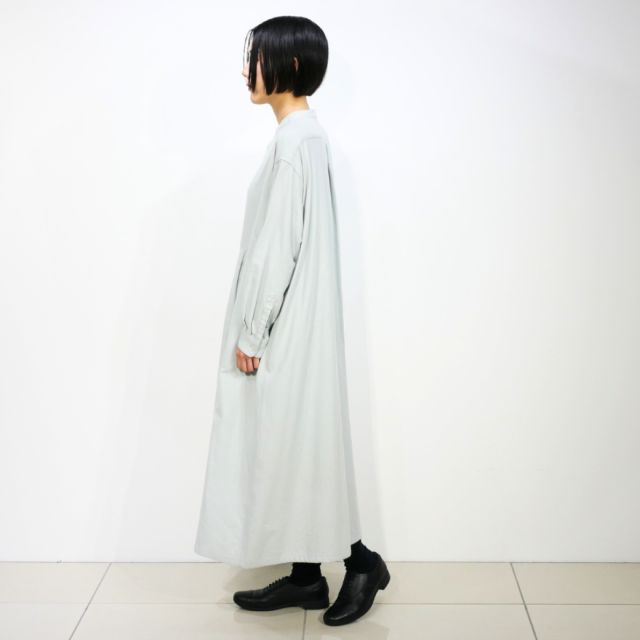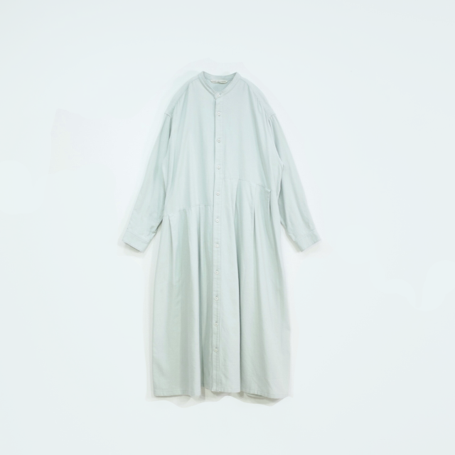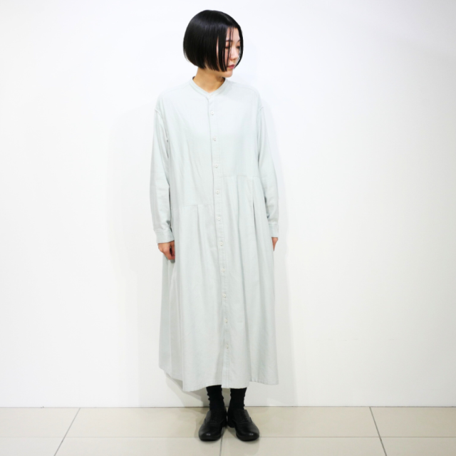 アシンメトリーのデザインが目を惹くバンドカラーワンピース。