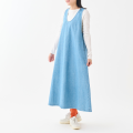 表情豊かな10ozデニムのジャンパースカート。深めに設定したUネックがポイントで、顔まわりをすっきりと見せてくれます。シンプルなデザインのため、インナー次第でオールシーズン活躍。脇シームポケット付きで、実用性も兼ね備えた一着です。