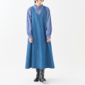 表情豊かな10ozデニムのジャンパースカート。深めに設定したUネックがポイントで、顔まわりをすっきりと見せてくれます。シンプルなデザインのため、インナー次第でオールシーズン活躍。脇シームポケット付きで、実用性も兼ね備えた一着です。