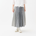 6ozの3種類のヒッコリーデニムをピッチ違いでランダムに配置した、個性あふれるウエストゴムスカートです。