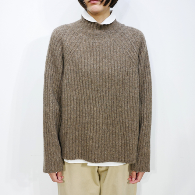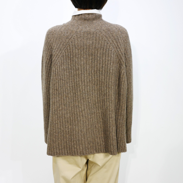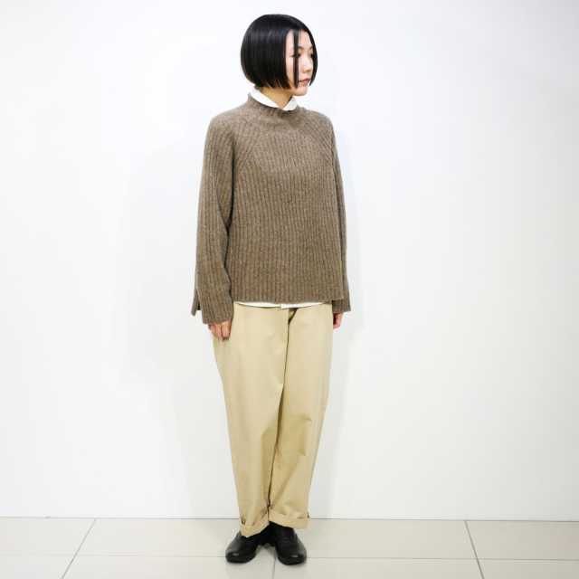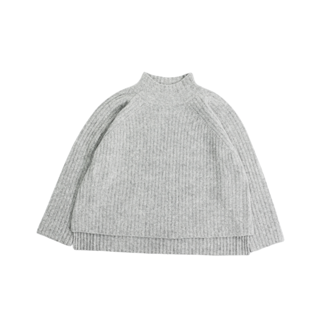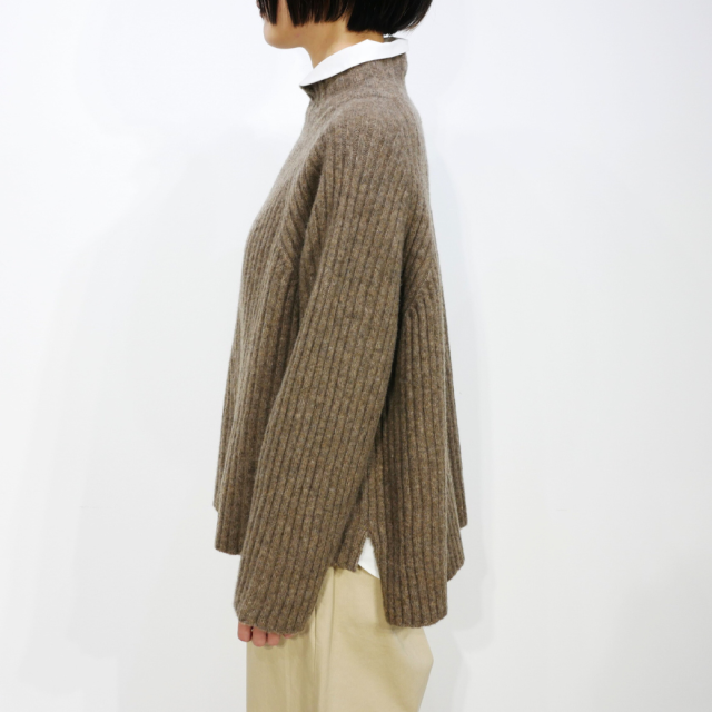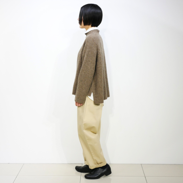 ワイドシルエットのリブタートルニット。