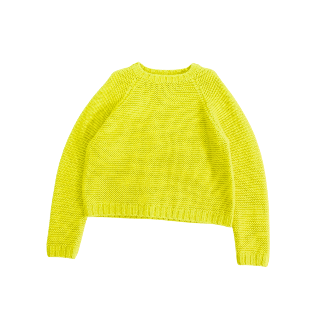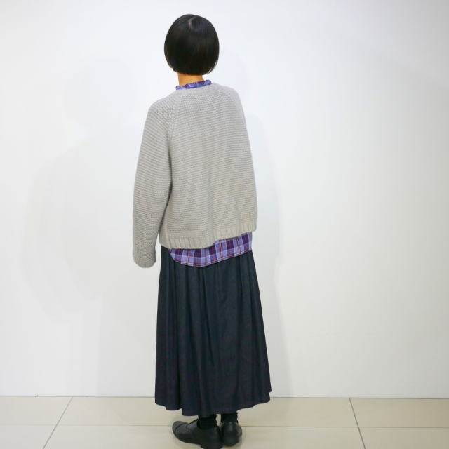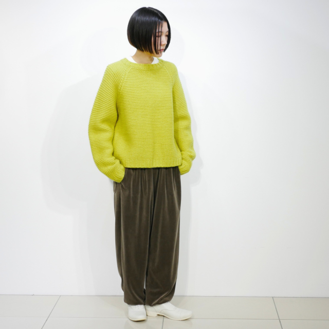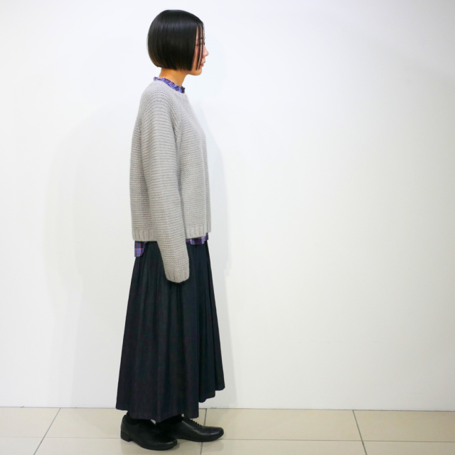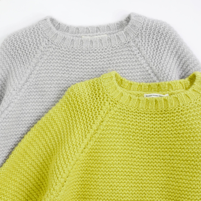 ガーター編みでしっかりとした生地感のクルーネックニット。
