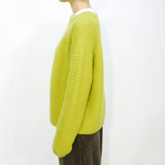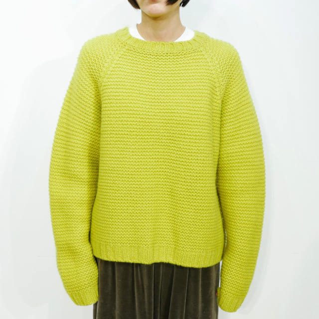 ウール100%の太い糸をしっかりと編み、編み地がしっかりと浮き出て、シンプルながらも個性的なプルオーバーニットです。