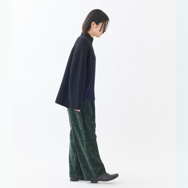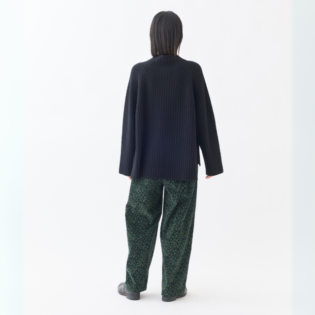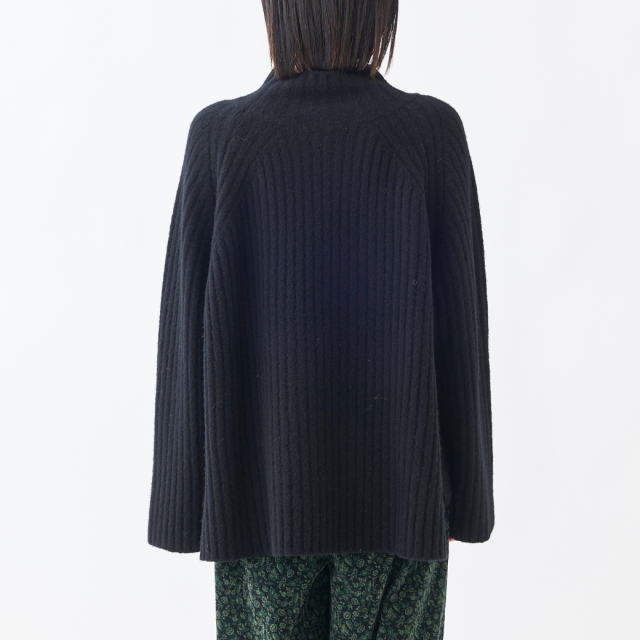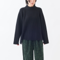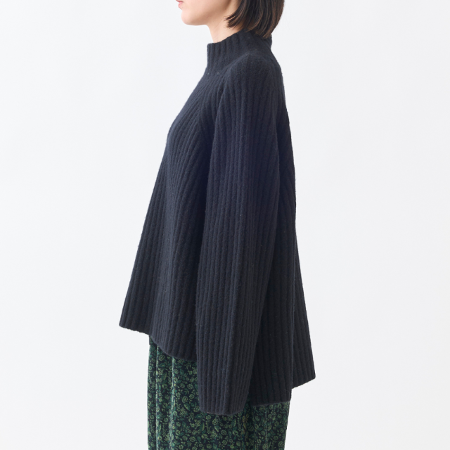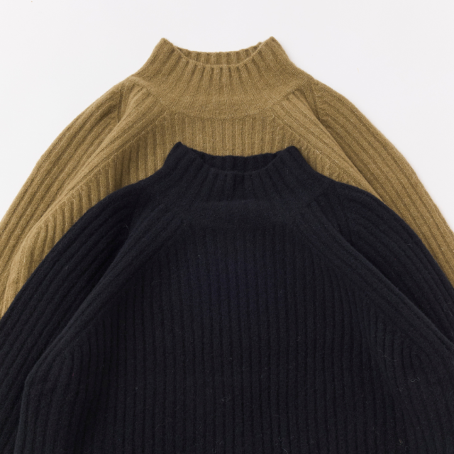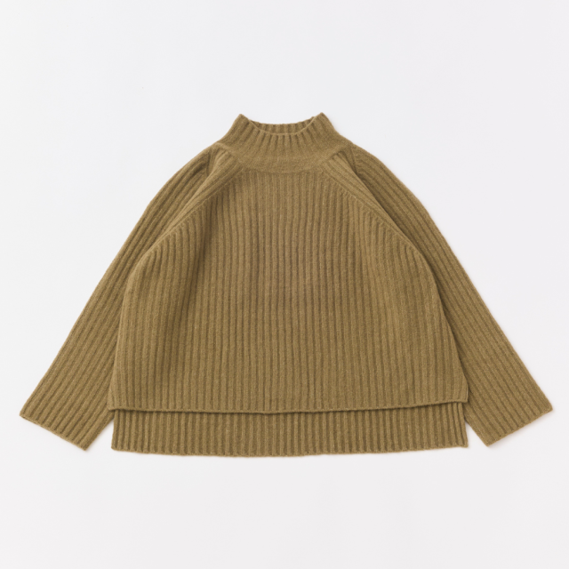 ウール60%、ヤク10%の起毛感のある糸を使用したワイドシルエットのタートルニット。シャツやワンピースに重ねるコーディネートもおすすめです。