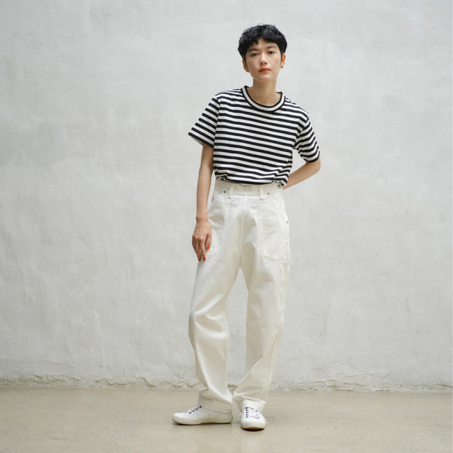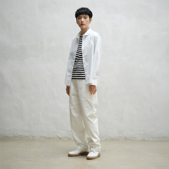 ランチパンツが持つワーク感はそのままにオールホワイトで仕立てクリーンな印象に。