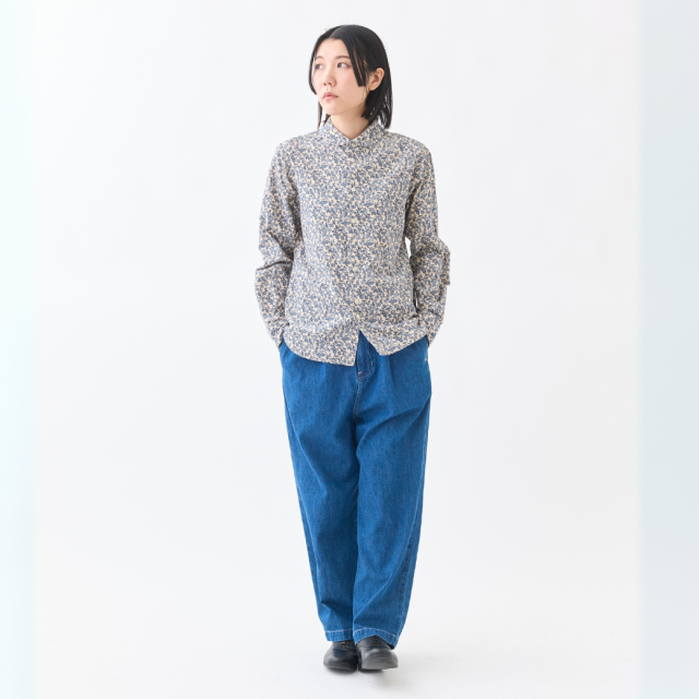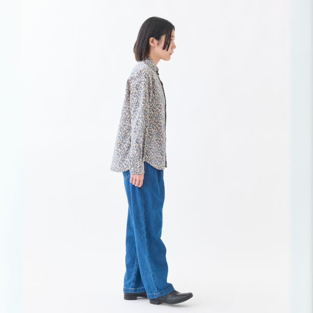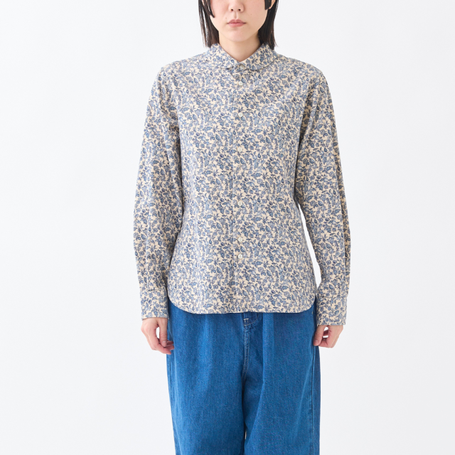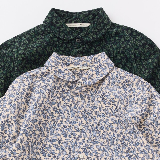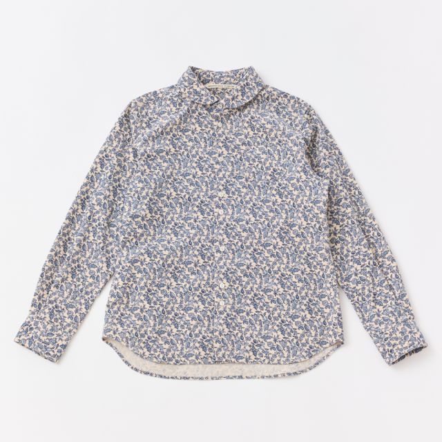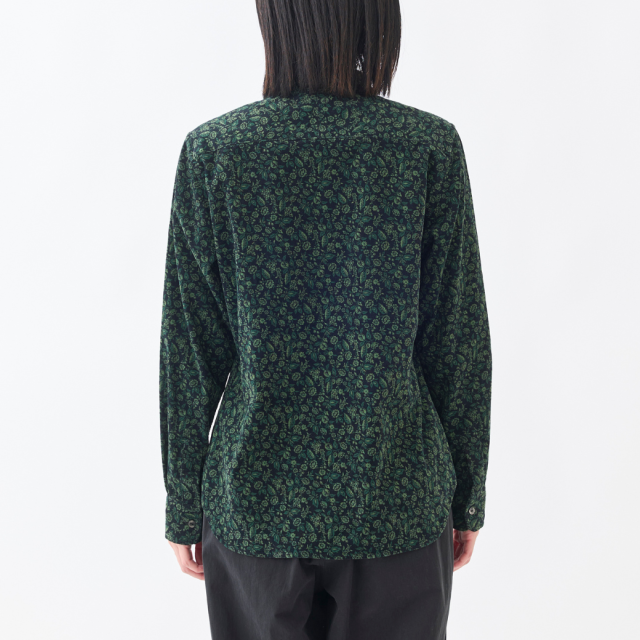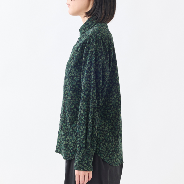 【ORIGINAL FABRIC】秋の果樹園をイメージしたオリジナルプリントのシャツコーデュロイ素材を使用した定番型のラウンドカラーシャツ。