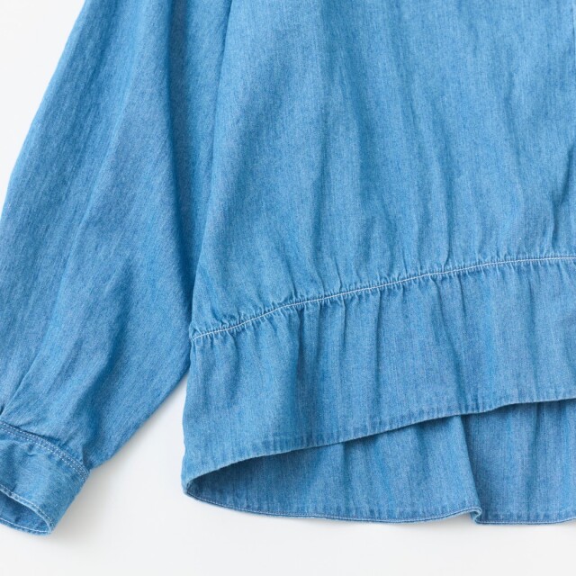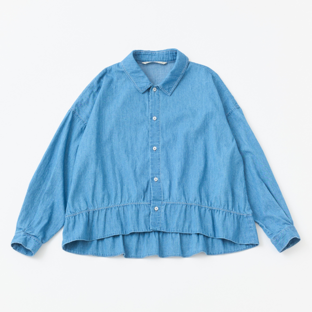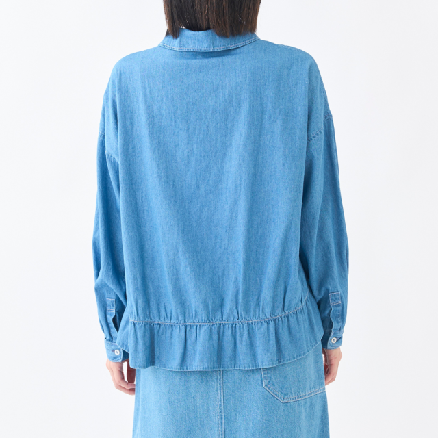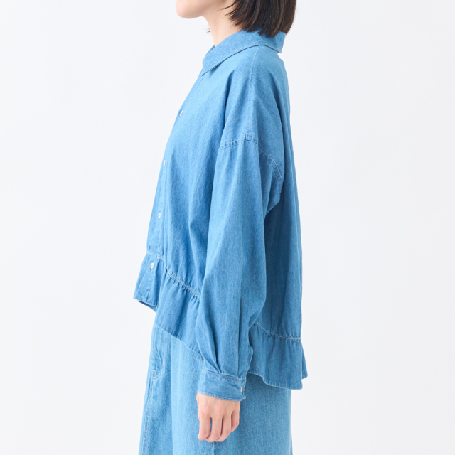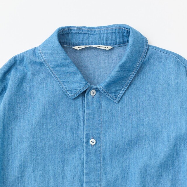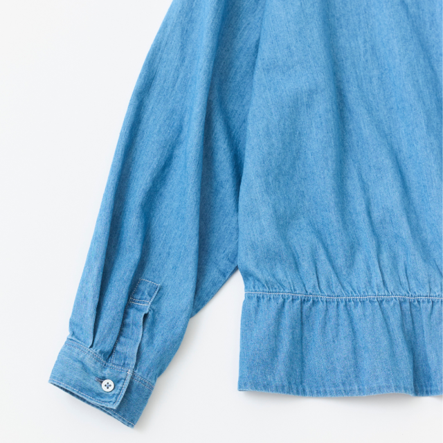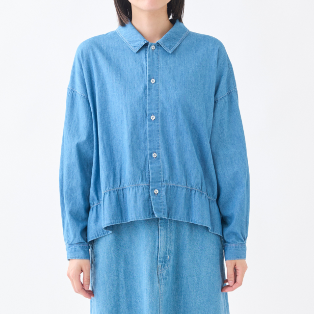 【INDIGO】ハリ・コシ感がある4.5ozデニムにブリーチ加工を施し柔らかな風合いにしたデニムシャツ。