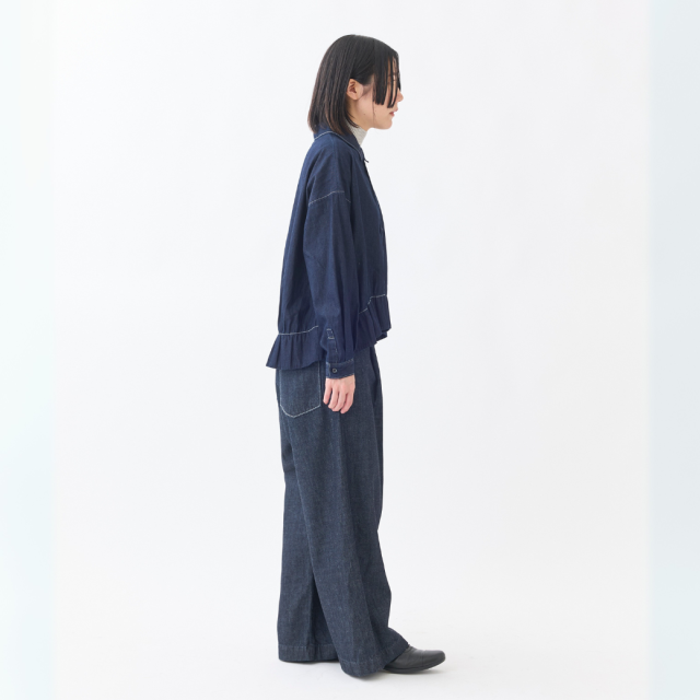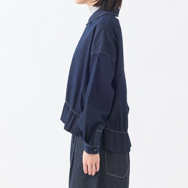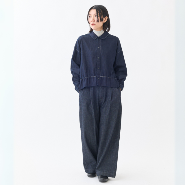 【INDIGO】ハリ・コシ感がある4.5ozデニムを洗い加工で柔らかな風合いにしたデニムシャツ。
