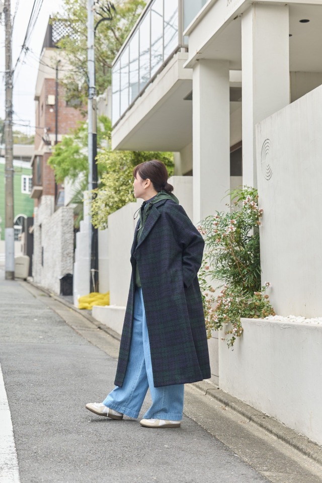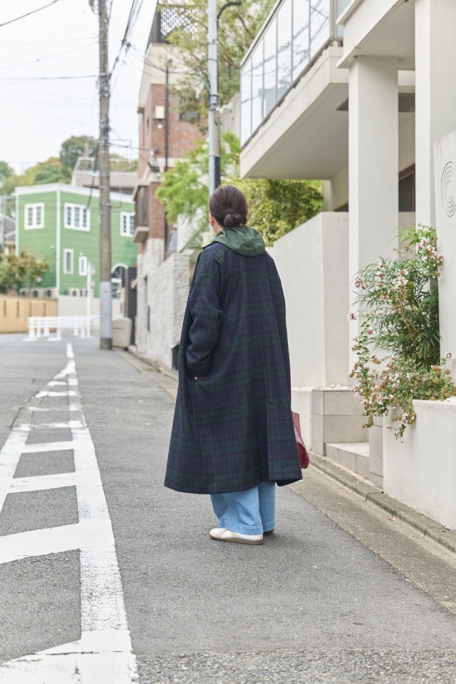 ループチェックメルトンロングコート