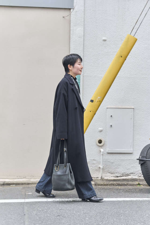 《ロングコート×濃色デニム》