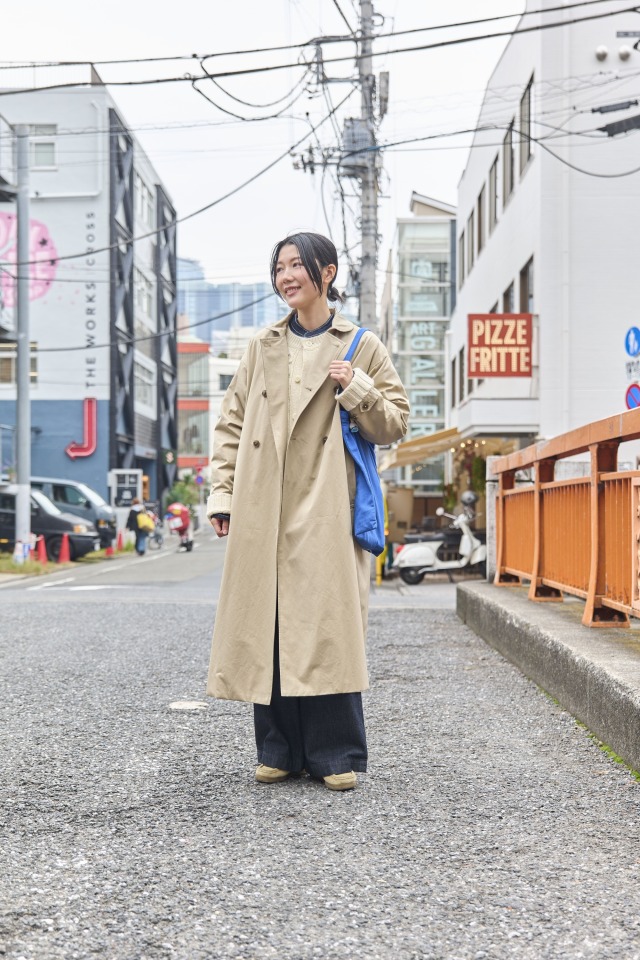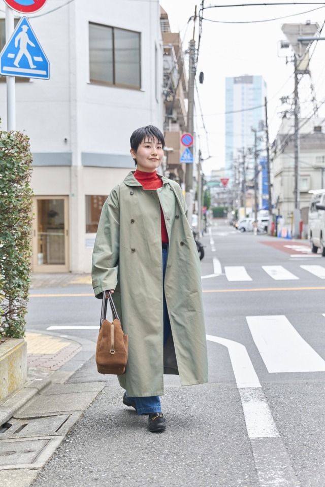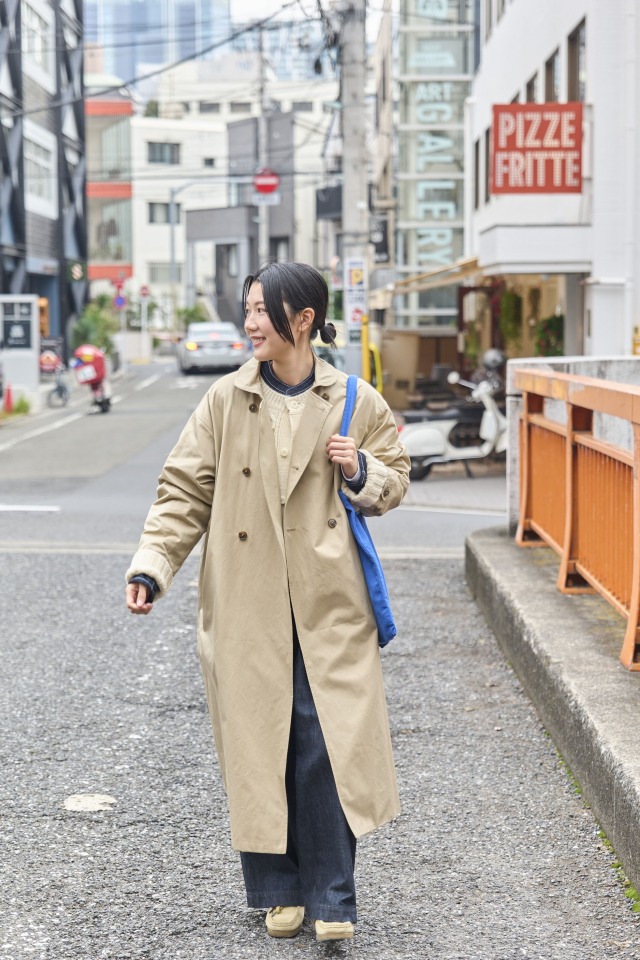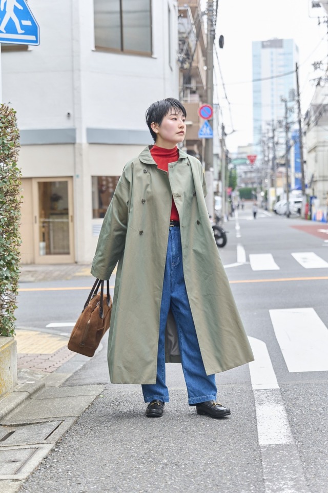 丸襟トレンチコートで