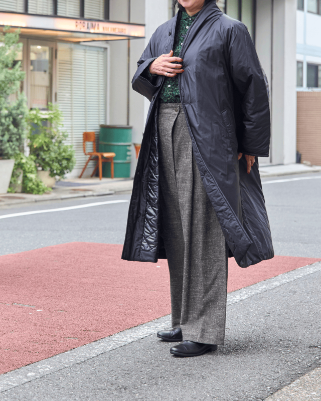 《中綿ロングコート×ラップ風パンツ》