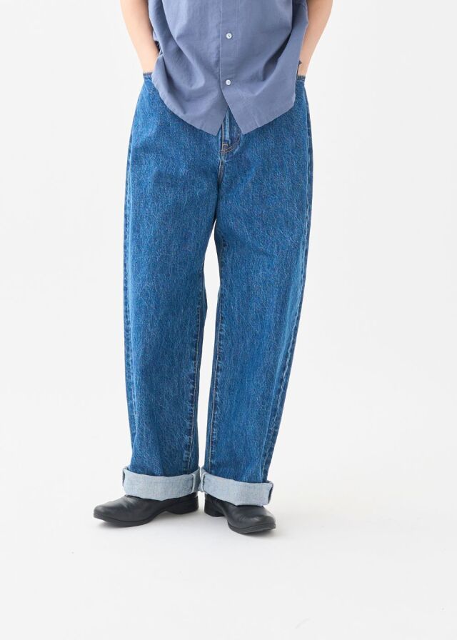 トレンド感のあるワイドストレートシルエットを採用した、5ポケットデニム。 腰を落として穿いたようなラフなムードを残しながら、脚のラインはすっきりと、自然に長く見えるバランスに仕上げました。