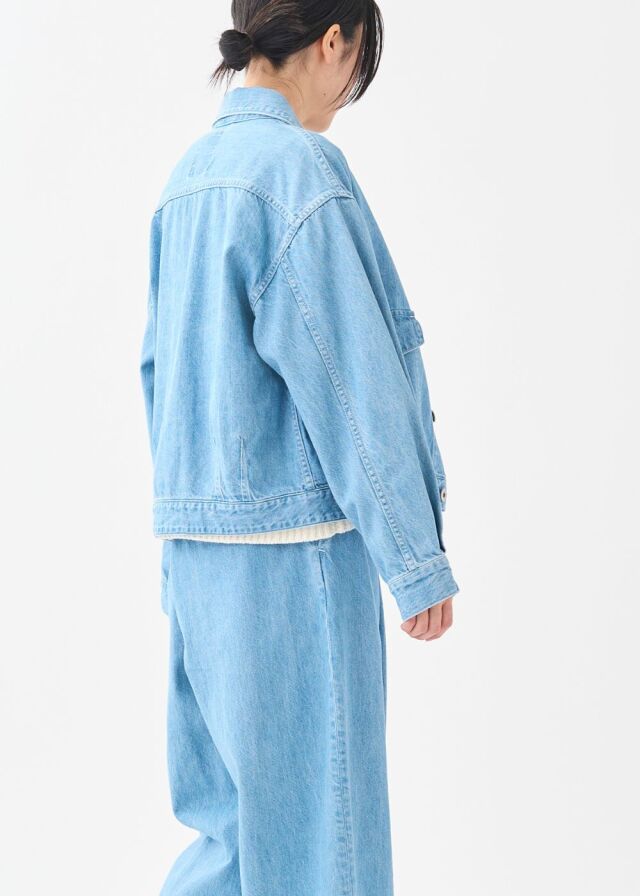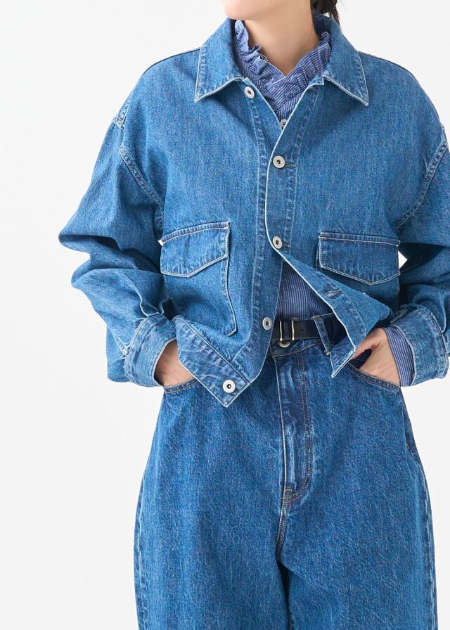 程よい厚みの10ozデニムを使用したデニムブルゾン。 Gジャンよりもラフで新鮮な印象を与える、今季注目の一着です。