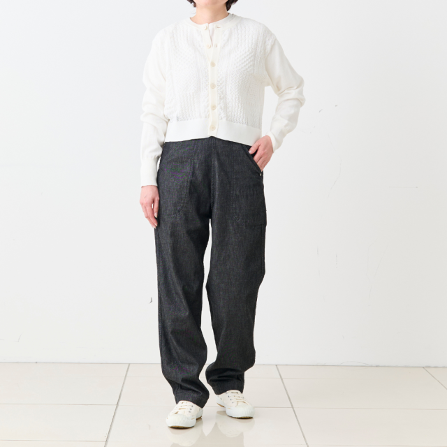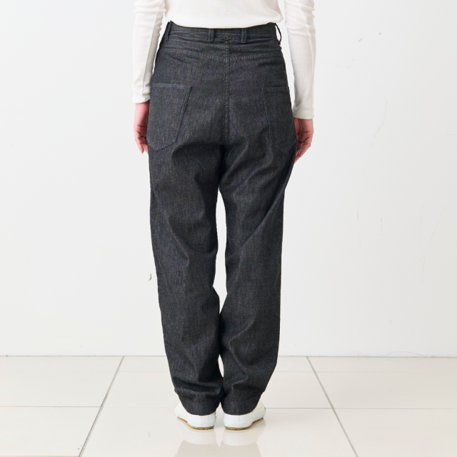 7ozのブラックデニムを使用し、程よいハリ感と柔らかさを両立。