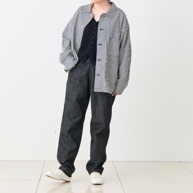 カジュアルになりすぎない程よい表情と、春夏の季節にも心地よくお召しいただける軽やかな着心地を兼ね備えています。